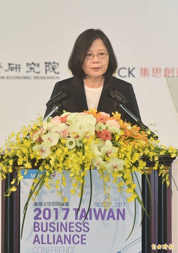 經濟部今舉辦「2017全球招商論壇」,總統蔡英文出席致詞,向外商呼籲「現在就是最適合投資台灣的時候」。(記者方賓照攝)