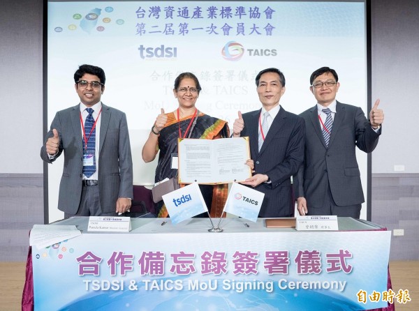 〔記者陳炳宏/台北報導〕台灣資通產業標準協會(TAICS)今天舉辦「第2屆第1次會員大會」,會中邀請印度TSDSI(Telecommunications Standards Development Society, India,電信標準開發協會)代表 Ms. Pamela Kumar, Director General來台進行專題演講。同時在經濟部技術處副處長林德生與印度台北協會副會長馬經儒的見證下,雙方簽署合作備忘錄(MoU),未來將以「5G」、「物聯網」技術試點的方式展開雙方交流合作。
