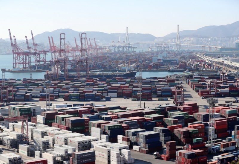 南韓貿易協會(KITA)國際貿易研究院12日發布統計,指因美去年開始對中加徵關稅,南韓整體出口規模合計已降低0.14%,約1.02兆韓元(約新台幣269億元)。圖為南韓釜山碼頭。(歐新社)