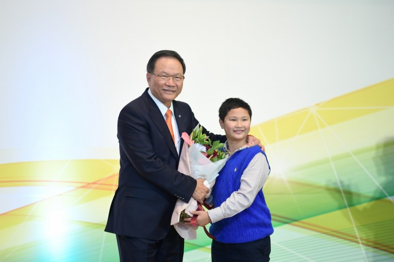 〔記者洪友芳/新竹報導〕工研院今天上午舉辦第8屆工研院院士授證典禮,由總統蔡英文親臨頒授院士證書與證章給新科院士,蔡英文表示,院士們不只是專家、企業界、還是哲學家,感謝5位新任院士對產業界與國家的貢獻,她也特別針對致詞時一度哽咽的台塑公司董事長林健男幽默一下,笑稱獻花的金孫與林健男長得很像。