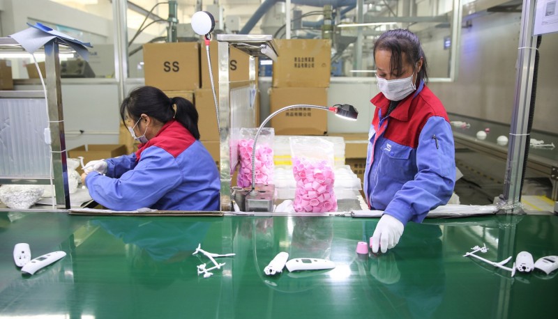 中國武漢肺炎疫情衝擊該國企業營運,官方機構「中國國際貿易促進委員會」(China Council for the Promotion of International Trade)傳出,其已向近100家中國企業發放「不可抗力豁免證明」(force majeure exemptions)。圖為中國山東省溫度計工廠。(法新社)