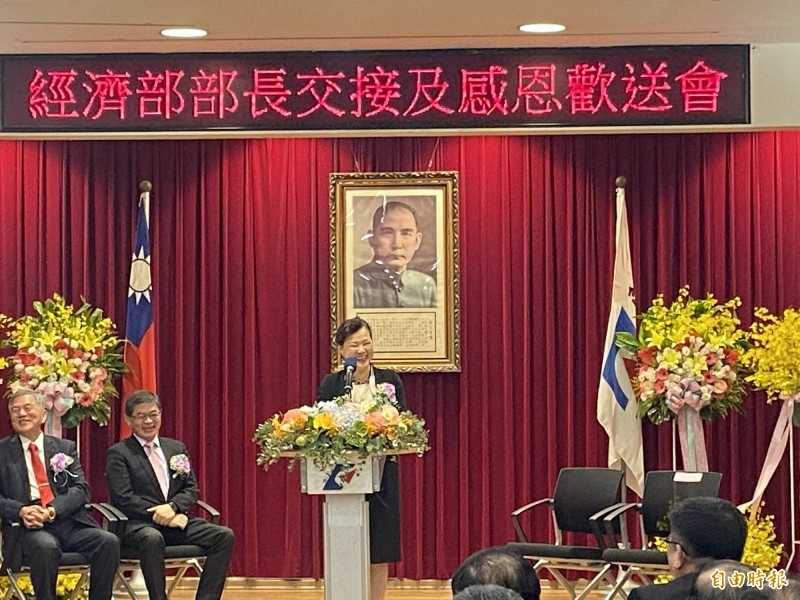 經濟部長交接典禮,中立者為新任經長王美花。(記者黃佩君攝)