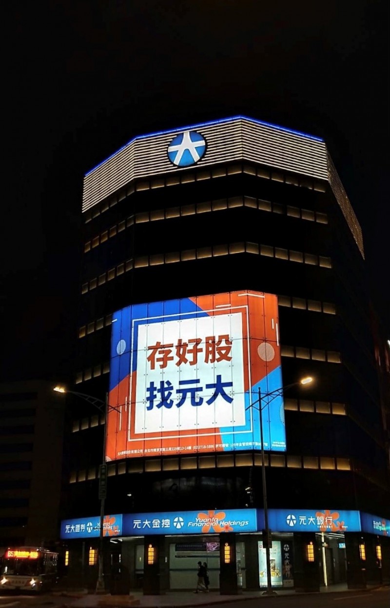 元大金全台首家100%綠電分行明年誕生,旗下4據點預計明年第2季供電,圖為元大寶慶大樓。(元大金提供)