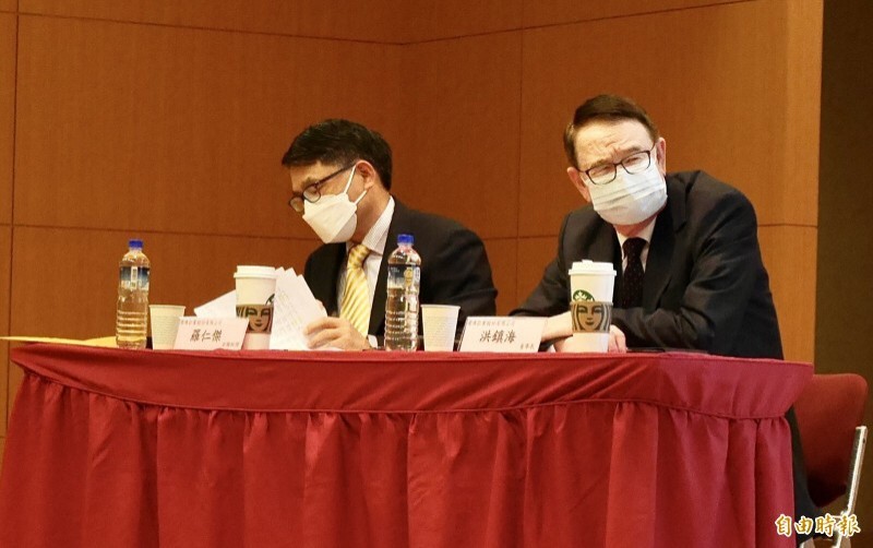 儒鴻董事長洪鎮海(右)、副總羅仁傑(左)昨天出席法說會。(資料照)(記者方韋傑攝)