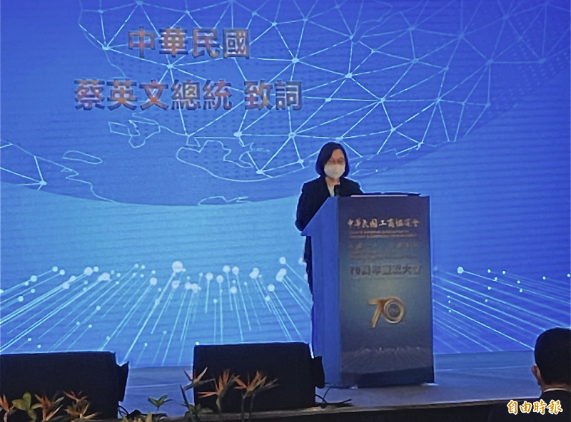 蔡英文表示。政府與工商團體的共同目標是擴大台灣全球的經貿佈局,以及加速產業淨零轉型;此外,現在政府也希望透過「台美21世紀貿易倡議」跟美國進一步深化貿易關係,持續努力爭取加入CPTPP,開拓更大的國際市場,