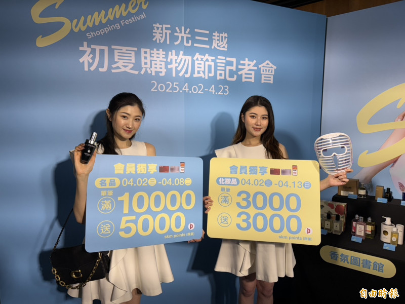 〔記者卓怡君/台北報導〕新光三越初夏購物節今日開跑,在化妝品單筆滿3000元送3000點(skm points)與首二日聯名卡限定卡友禮─單筆滿3000元再贈2000點的帶動下,帶動化妝品整體成長近3%,為母親節檔期開出紅盤。