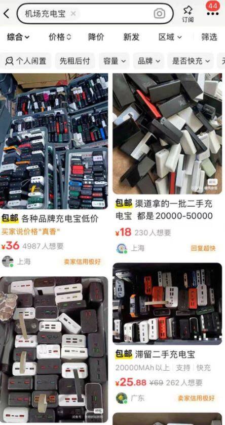 綜合媒體報導,有網友發現在淘寶旗下的二手交易平台「閒魚」搜尋「機場充電飽(行動電源)」,就能看到大批各種品牌、類型、容量的行動電源出售。