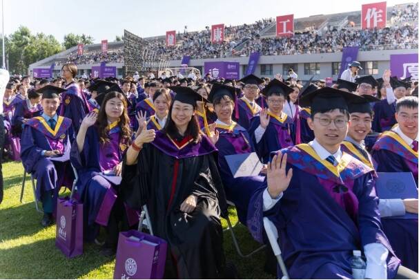 本科生在北京參加2025年清華大學畢業典禮。(擷取自彭博)