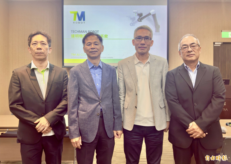 達明財務長王偉霖(右起)、總經理陳尚昊、董事長何世池、營運長黃識忠看好未來機器人發展前景。(記者方韋傑攝)