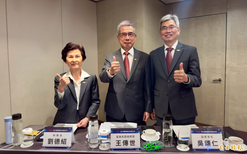 松川精密財務長劉德紹(左起),董事長王傳世,副董事長吳頌仁看好營運展望。(記者方韋傑攝)