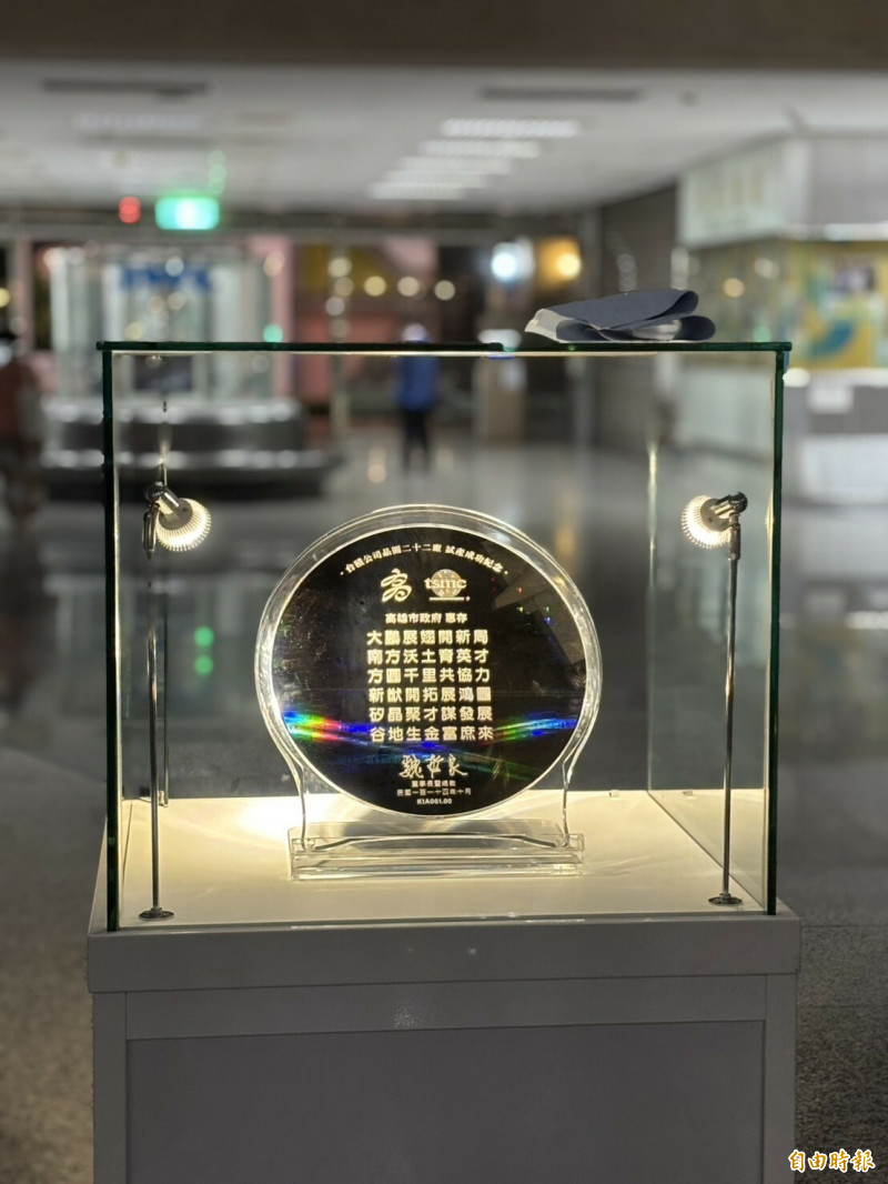 台積電贈送編碼「K1A001.00」首片紀念晶圓給高市府。(記者蔡清華翻攝)
