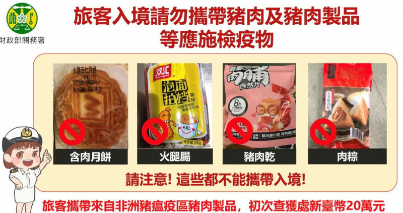 關務署最後,海關將持續落實相關邊境管制作為,與主管機關農業部,共同守護國門及非疫家園,並呼籲國人切勿違規攜帶或輸入豬肉製品,違者依據動物傳染病防治條例移送防檢署,最高可處新臺幣100萬元罰鍰。