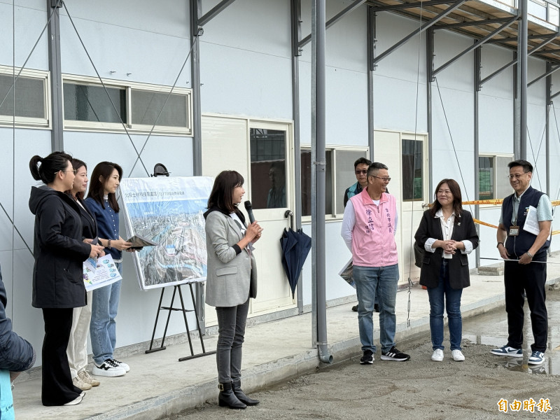 王瑞雲說,新壽建造的公務所要清光,現圍籬還有新壽廣告,需清得乾乾淨淨。其他如廢土坑等,市府已經支付相關費用,可以移轉就會給輝達。(記者蔡愷恆攝)