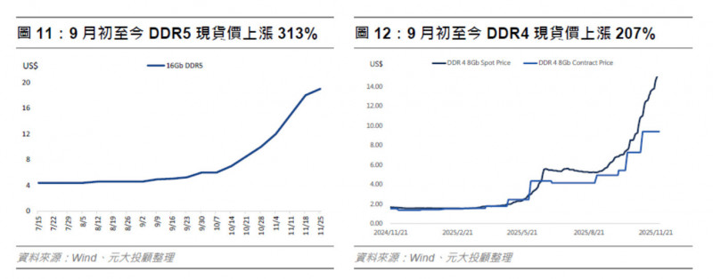 元大投顧認為,四大原因使得報價持續上揚,第一,雲端服務供應商(CSP) Server訂單高於預期,進一步排擠其他應用的供應;第二,HBM持續供不應求,且位元產出耗用量大;第三,以高頻關記憶體(BOM) 成本與規格調整的彈性來看,對AI Server影響相對輕微;第四,原廠記憶體與快閃記憶體月產能擴張有限主要聚焦在製程升級提升產出。
