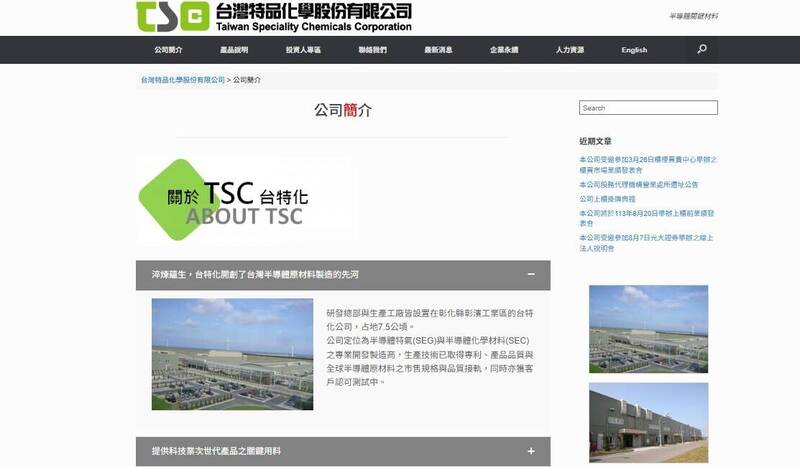 高階氣體強勁成長,法人看好台特化2大產品明年放量。(圖擷取自官網)