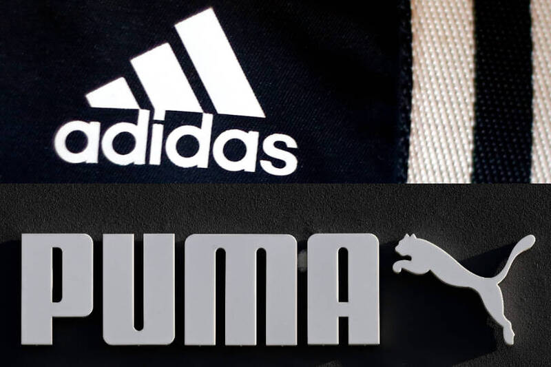 德國兩大運動品牌愛迪達和Puma長期對立。(路透、法新社資料照,本報合成)