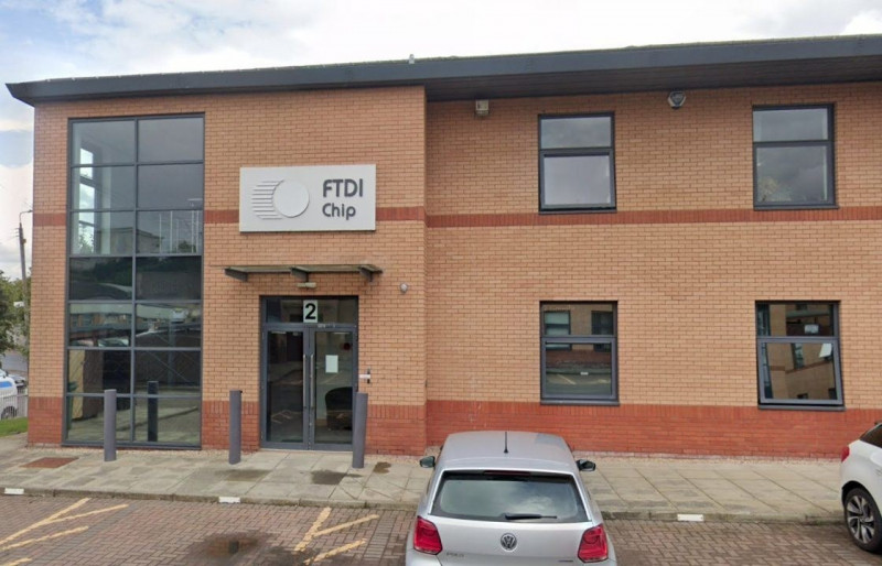 英國政府2024年下令北京建廣資產管理公司旗下子公司FTDIHL,出售飛特蒂亞晶片公司(FTDI Chip)的80.2%股份,今年12月底將是強制出售的最後期限。圖為飛特蒂亞晶片公司位於格拉斯哥的總部。(擷取自Google Map)