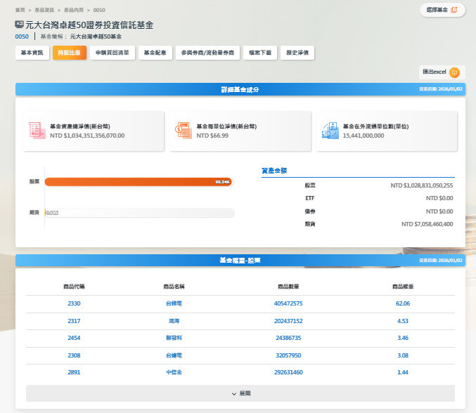 台積電大漲+季配息雙重利多,散戶湧入0050。(擷取自元大投信)
