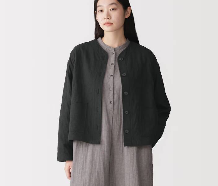 日媒報導,這款女士卡波克混紡雙層紗絎縫外套(カポック混二重ガーゼ キルトジャケット)沒有領子,穿起來很方便。