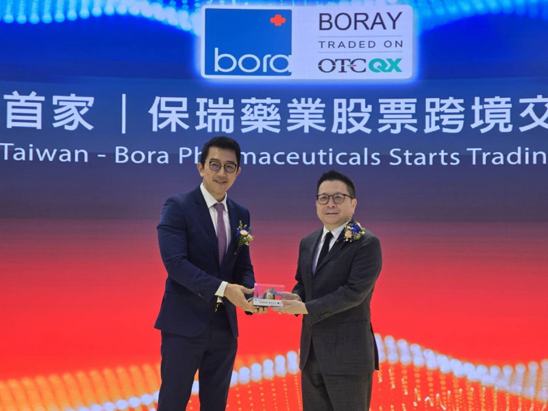 保瑞去年營收年增2.7%,本週一級ADR正式在美國掛牌。圖左為保瑞董事長盛保熙、右為證交所董事長林修銘。(資料照)