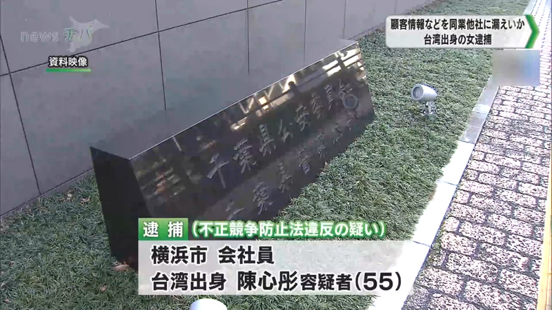 千葉電視台報導,居住於橫濱市、台灣出身的55歲公司職員陳心彤,涉嫌違反日本的《不正競爭防止法》,遭到千葉縣警方逮捕。(圖擷取自Youtube/千葉ニュース(チバテレ))