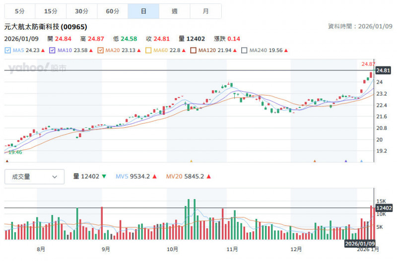 地緣政治升溫,00965股價寫新高。(擷取自奇摩股市)