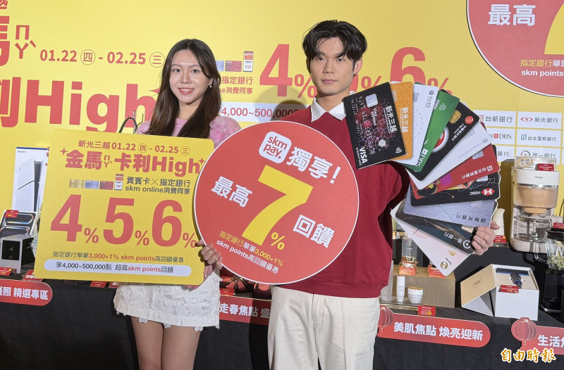 〔記者卓怡君/台北報導〕春節進入倒數,新光三越搶攻春節商機推出《金馬卡利High》活動,自1月22日至2月25日活動期間,攜手信用卡市場市佔率超過8成的11大指定銀行,祭出單卡累計消費滿1萬元回饋4%、滿6萬元回饋5%、滿30萬元回饋6% skm points,再搭配百貨最強行動支付skm pay消費任一筆達3000元再加碼1%,最高回饋7%,新光三越表示,《金馬卡利High》全檔期長達35天,全檔期預估業績年增超過6%,業績有望突破116億元。