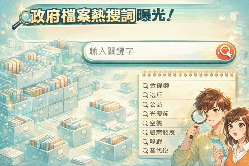 進入查詢網首頁,就可以看到一串令人玩味的「熱門搜尋詞」,包括金鐘獎、逃兵、公益、光復節、空襲、農業發展、解嚴、替代役。這些看似各自獨立的關鍵字,其實也反映了民眾對於歷史、制度與個人權益的高度關注。