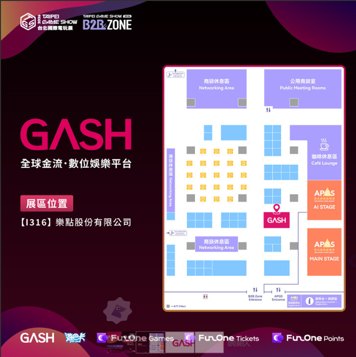 網銀表示,面對亞太遊戲市場的快速變遷,GASH以支付為核心基石,全面啟動旗下 「FunOne」系列服務,建構從金流到內容的完整商務循環,未來將致力於打破虛擬與實體的消費界線,為使用者及合作夥伴創造更直覺、優質且實用的娛樂生活體驗。此次參展四大重點包括第一「GASH與遊e卡」,全方位儲值解決方案,精準觸達核心玩家;第二「FunOne Games」跨裝置遊戲平台,實現全球在地化一鍵支付;第三「 FunOne Tickies」高效能票務架構,重塑藝文與賽事參與體驗;第四「FunOne Points」點數紅利核心,驅動泛娛樂生態良性循環。