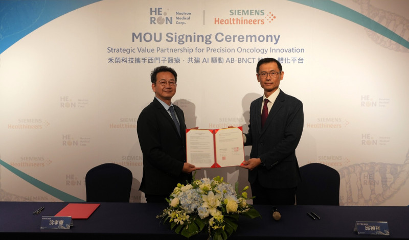 禾榮科技攜手西門子醫療,共建AI驅動AB-BNCT診療一體化平台。圖左為禾榮科技總經理沈孝廉、右為西門子醫療總經理邱禎祥。(圖:禾榮科提供)