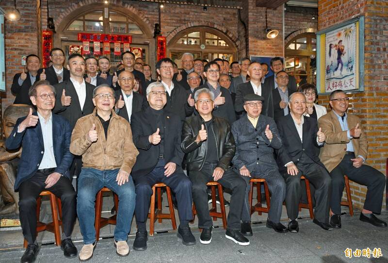 兆元宴開始前也循傳統,黃仁勳先和供應鏈CEO們大合照,第一排仍是華碩董事長施崇棠、廣達董事長林百里、台積電董事長魏哲家、聯發科執行長蔡力行、廣達副董梁次震、緯創董事長林憲銘等人。