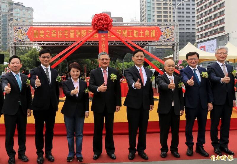 勤美集團創辦人何明憲(左4)被判刑3年2月定讞將入獄。圖為何明憲2019年在台中草悟道附近開發案動土典禮,與台中市長盧秀燕合照。(資料照)