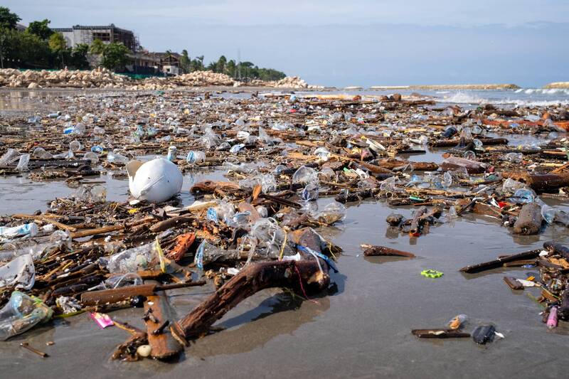 峇里島Kuta海灘堆滿垃圾,許多專家呼籲加強廢棄物管理執法與教育。(歐新社)