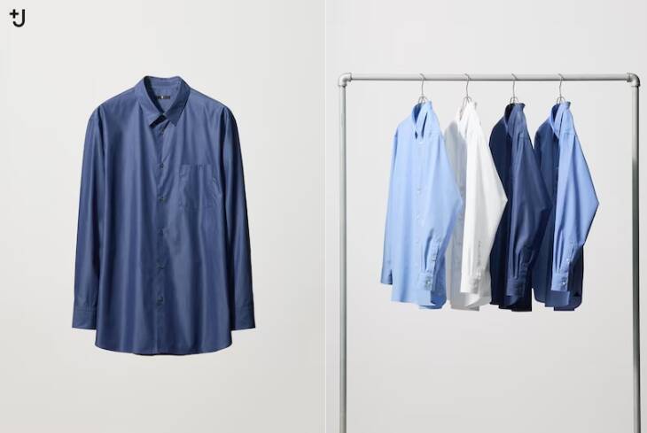 日媒報導,優衣庫+J聯名款的復刻版襯衫(ブロードシャツ/レギュラーカラー)採用高密度100%精梳棉紗製成,是高品質平紋襯衫,這款襯衫配有奢華的真貝殼紐帶,做工精緻,縫線和襯裡都體現了對細節的極致追求。