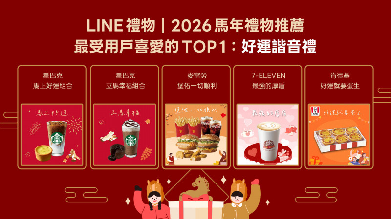 LINE禮物指出,具備諧音寓意或節慶限定優惠的「好運組合」在春節特別受到歡迎。(業者提供)