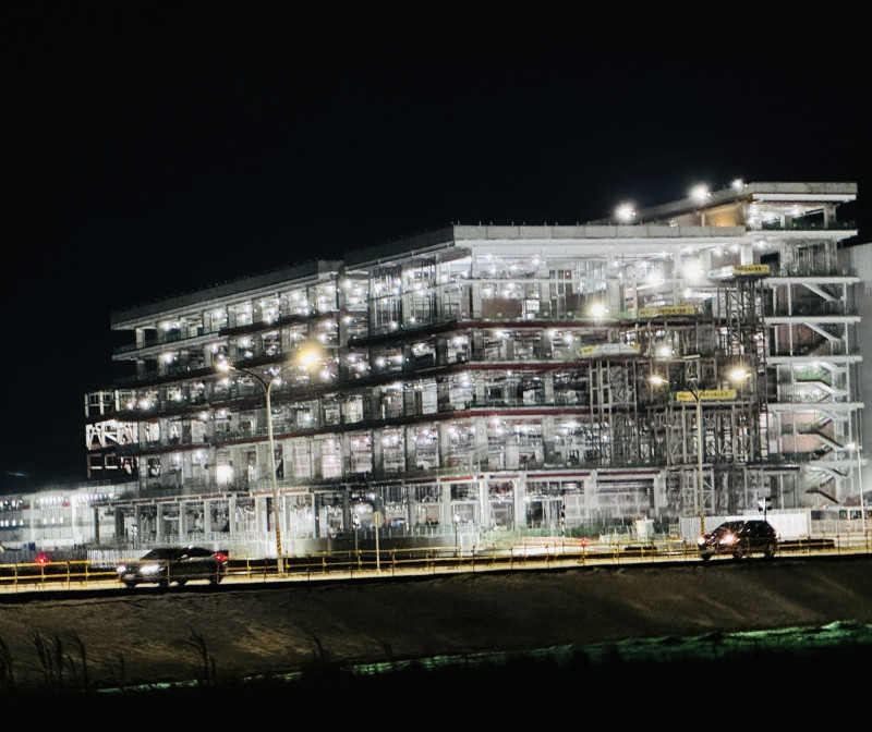 〔記者蔡宗勳/嘉義報導〕台積電嘉科CoWoS先進封裝廠進度加速,P1廠為趕在明年投入生產,營建工程正如火如荼進行中。即使農曆春節連假期間,也是夜以繼日趕工中,晚上燈火通明炫目耀眼景象,成為高鐵嘉義站特區一景。