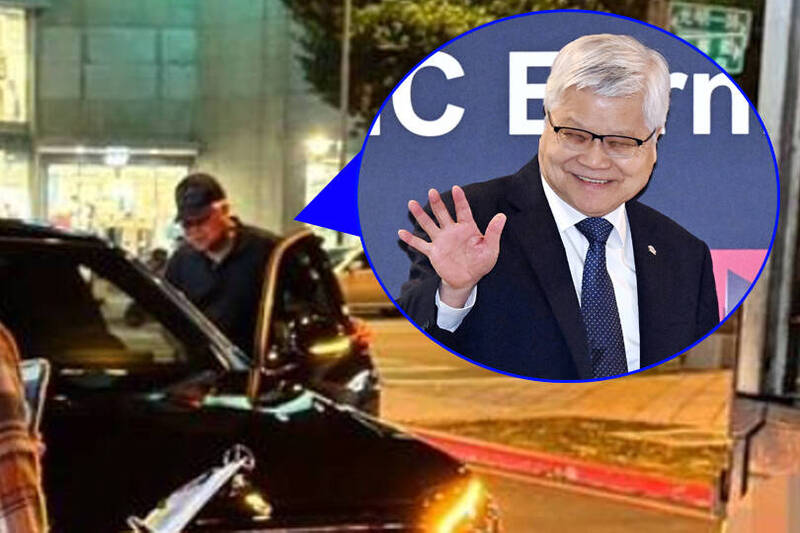 魏哲家拿到外帶後迅速上車離開。(記者侯家瑜攝)