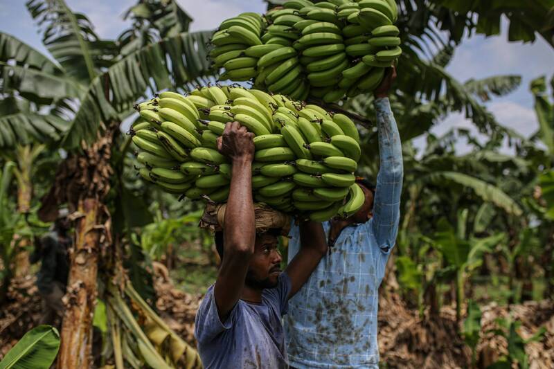 受中東戰火波及,印度香蕉出口受阻,價格大跌。(彭博資料照)