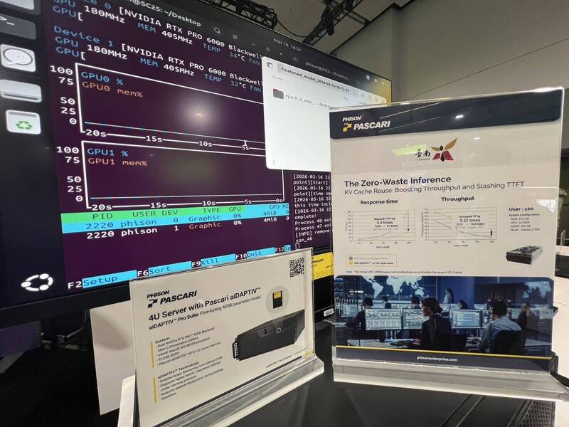 群聯電子在 NVIDIA GTC 展會攤位上向全球展示與台南市政府的合作案,以及在智慧城市AI應用上的創新成果。(群聯電子提供)