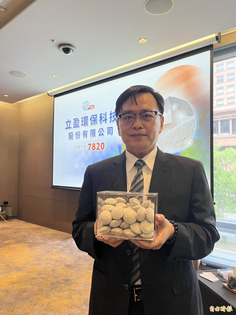 立盈環保董事長陳俊琦表示,受惠半導體廢棄物循環再利用,以技術服務搭配人造螢石銷售雙軌模式,切入上游特化品循環經濟市場。(記者張慧雯攝)