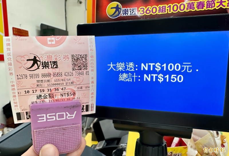 台彩表示,去年12月26日在苗栗頭份開出的大樂透頭獎1億元,中獎人大方捐款1000萬元。(資料照)