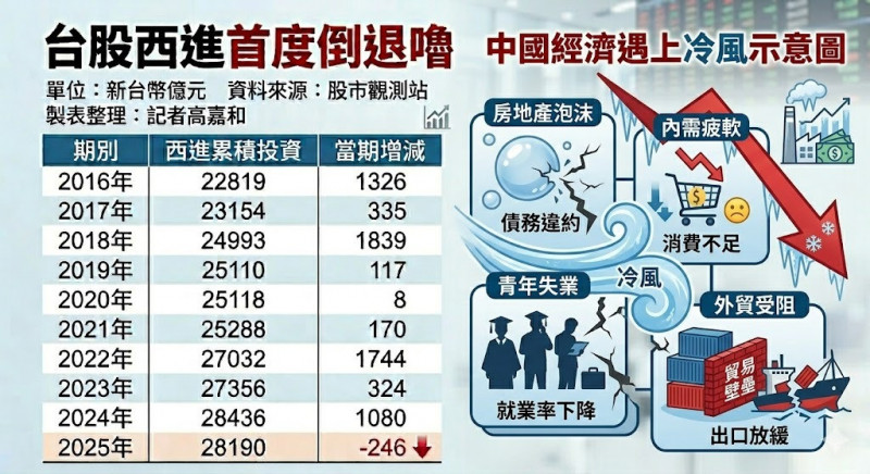 〔記者高嘉和/台北報導〕「鄭習會」即將登場,傳出為阻斷台美推動供應鏈合作,推動台商「二次西進」將是會談主軸之一。但根據台股公司三月底上傳完成的2025年年報,累積投資金額首度「倒退嚕」,且約1/3上市公司西進投資是賠到見底、甚至得自台灣增資填補錢坑。「鄭習會」期待推動的二次西進只是肖想!