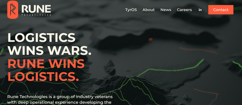 戈爾茲伯勒共同創辦的軟體開發公司「符文科技」(Rune Technologies),專注於軍事後勤領域。(圖擷取自符文科技官網)