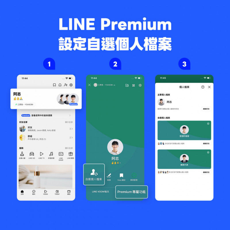 LINE Premium推出的「自選個人檔案」功能,標榜讓用戶可靈活切換不同社交身分。(截自官方部落格)