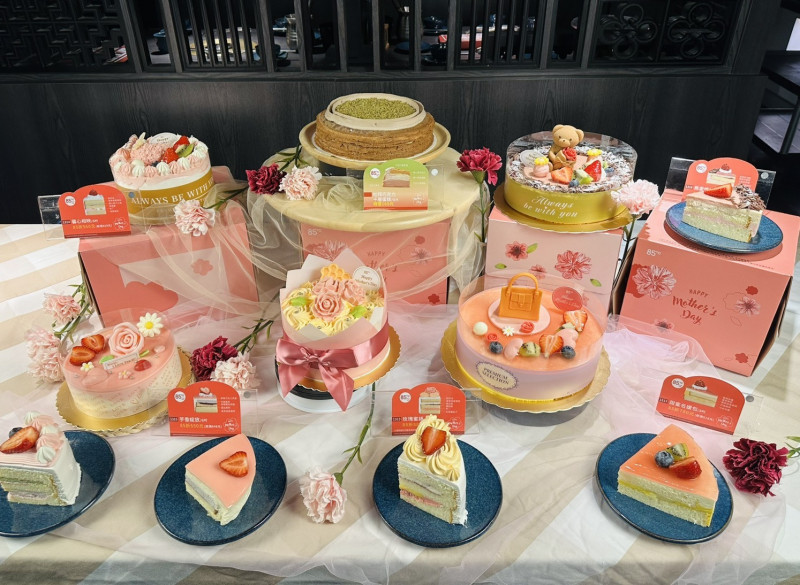 搶攻母親節商機,美食-KY(2723)旗下85℃以爆紅的「杜拜巧克力」千層蛋糕帶路,今年預計賣出5.3萬顆主題蛋糕,挹注3700萬元業績,較去年同期成長2%。(85℃提供)