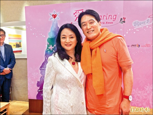 統一集團去年耶誕點燈儀式,董事長羅智先(右)和夫人高秀玲(左)甜蜜亮相。(記者楊雅民攝)