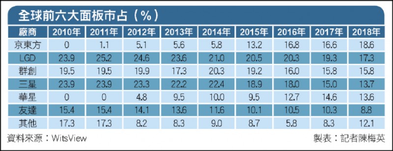 相較之下,靠著中國政府補貼以及台灣技術、人才奧援,中國面板廠逐漸崛起,短短幾年,中國面板廠彎道超車,跳過6代與7代線,直接蓋8.5代、10代廠,產能早已是全球最大,京東方去年更在大尺寸面板出貨量超車韓國LGD,躍上世界第一。