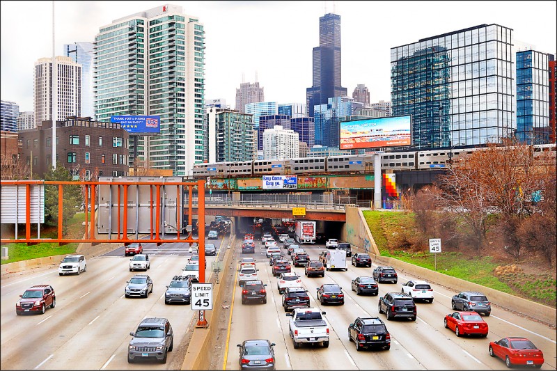 美國公布六十四兆元「就業計畫」,包括發展電動車,投入交通建設為最大宗。圖為芝加哥市區繁忙交通。(美聯社)美國公布六十四兆元「就業計畫」,包括發展電動車,投入交通建設為最大宗。圖為芝加哥市區繁忙交通。(美聯社)