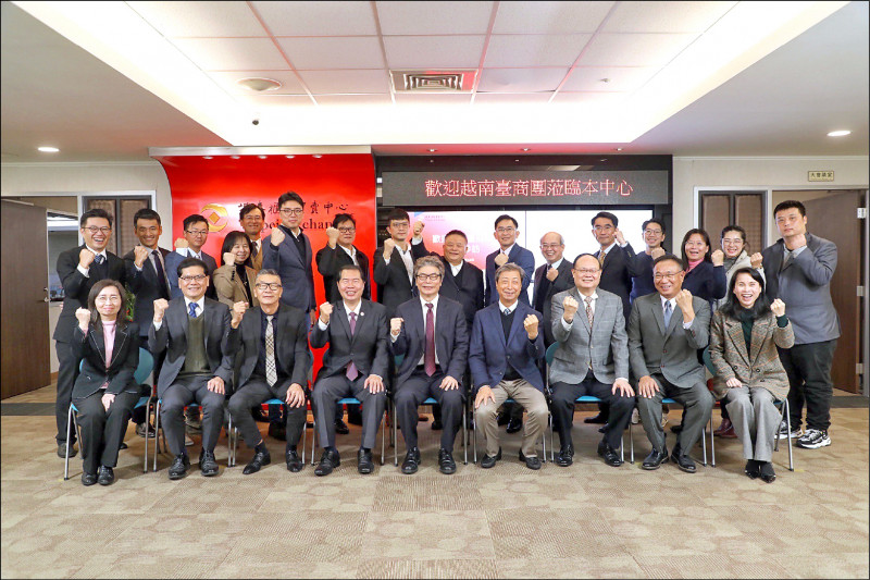 櫃買中心陳永誠董事長(前排中)、李愛玲總經理(前排右一)、安侯建業聯合會計師事務所池世欽策略長(前排左二)及來訪越南台商於櫃買中心合影。(櫃買中心提供)