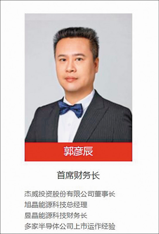 中國聚力成半導體有限公司首席財務長郭彥辰。(取自中國聚力成半導體有限公司網站)
